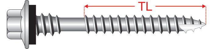 • 50mm length can also be used for square rib profiles (maximum crest height of 30mm) to thin metal battens up to approximately 0.55mm.