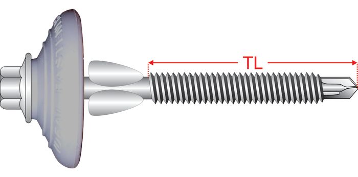 These screws feature a SteelMates® self-drilling point for drilling into steel. The unique Wing design eliminates having to pre-drill an expansion hole when crest fixing fibreglass skylight roof sheets to metal purlins. Assembled with 32mm StormMates™ Seal for waterproof connections whilst allowing for expansion and contraction of the fibreglass profile.