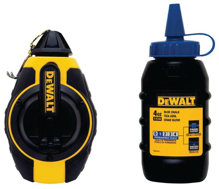 3:1 Gear Ratio - 30m Chalk Line Reel Kit Kit includes a 113g bottle of Blue Permanence scale 1 Chalk. Features & Benefits • 3:1 gear ratio allows for a smooth and quick retraction of line • Flush handle for compact storage • Ergonomic shape for secure grip and feel • 1mm Line for tight, clean marks • Intergraded clutch for reduced line jams and smooth line release • Over mold grip for slip resistance and drop protection