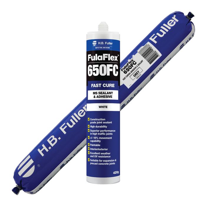 Fulaflex™ 650 FC is a powerful, high performance, solvent free, moisture curing hybrid polymer adhesive/sealant that provides a non-hazardous alternative to traditional polyurethane adhesive/sealants. Fast curing to form a seal that is tough, elastic and weatherproof with good chemical resistance. A high modulus product ideal in bonding applications where expansion and contraction are anticipated. Suitable for use in trafficable areas such as concrete saw cuts in commercial buildings.