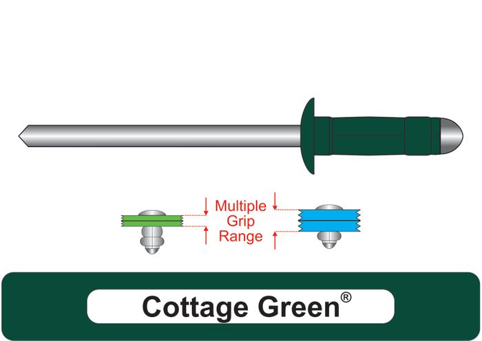 401100.2500 Cottage Green® Multi-Grip Aluminium Rivets with Steel Stem - Dome Head