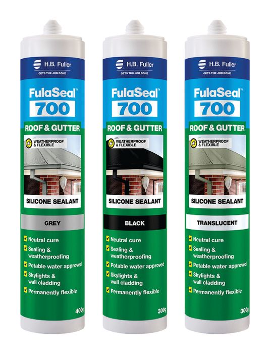 FulaSeal™ 700 Roof & Gutter Silicone Sealant is a neutral cure sealant that does not corrode materials commonly used in roofing construction. It is ideal for sealing and weatherproofing roofing, guttering, flashings and rainwater systems, glazing, weather sealing, metal assembly and many other professional trade applications.