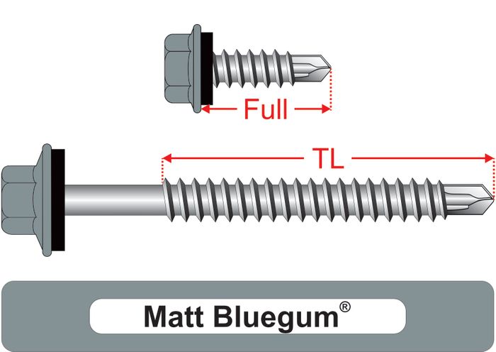 These screws feature a Coarse Thread for fast installation and increased holding power when fixing into metal thicknesses less than or equal to their drilling capacity. Assembled with EPDM Seal for waterproof installations such as valley fixing wall cladding or crest fixing roofing profiles. Painted to match prepainted metal roofing & cladding profile colours. All other sizes and colours are available upon request.
