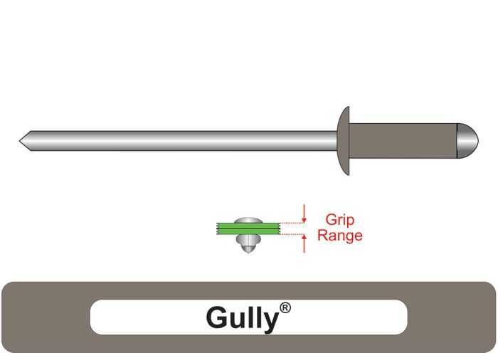 All rivets have a minimum and maximum thickness of materials for which they are designed to fix, this is known as the Grip Range of the rivet.