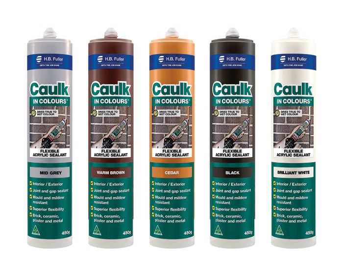 Caulk in Colours™ acrylic sealant is a premium quality flexible, joint filler/sealant for use in sealing expansion joints and gaps in construction work and tiling. It can be used for interior and exterior joint sealing where a water and mould resistant sealant is required that also has good UV resistance. Caulk in Colours™ dries “true” to its wet colour and resists long term splitting and cracking. Supplied in clear cartridges for easy colour matching.