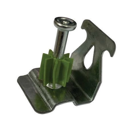 This angled ceiling clip assembly comes complete with pre assembled 32mm drive pin. An ideal multi-purpose clip can be used for fixing hooked rods, tie wire or looped end suspension wire in ceiling applications.