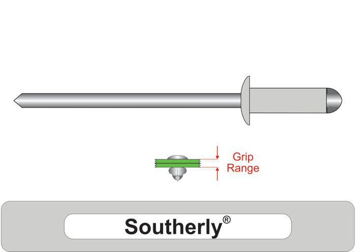 All rivets have a minimum and maximum thickness of materials for which they are designed to fix, this is known as the Grip Range of the rivet.