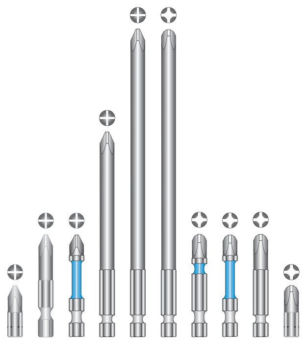 Phillips Drive bits are available in a range of sizes and lengths. The 25mm length Insert bits are recommended to be used with Magnetic Bit Holders. Longer length Power Bits are designed to be fitted directly into the end of a electric or battery operated screwdriver, impact driver or a drill chuck.