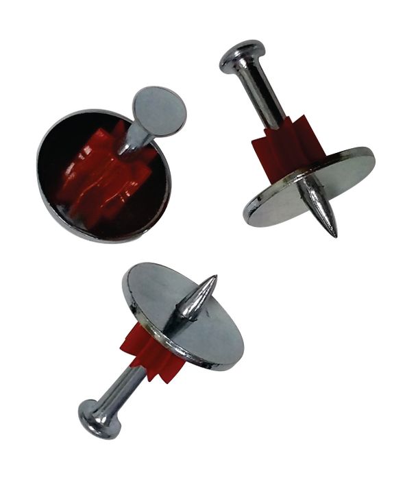 .300" Flat Head drive pins are used extensively for applications fixing to standard strength concrete. Specifically designed for fixing thin metal to concrete they are assembled with a 22mm metal washer providing a larger bearing area providing superior pullover resistance of the fixture.