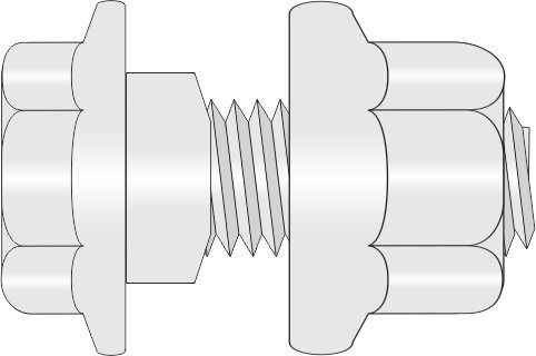 Featuring a Flanged Hex Head bolt and a Flanged Hex nut which eliminates the need for any washers and makes it much quicker, easier and safer to instal than the traditional bolt, nut and two washer assemblies. Specifically designed for thinner materials it has a 16mm step in the shank under the head, a mating recess in the nut which extrudes the two materials together forming a stronger, more secure connection. They come as an assembly with a bolt and nut attached for ease of handling.