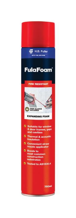 FulaFoam™ Fire Resistant Expanding Foam is a single component, fire resistant polyurethane expanding foam filler. It can provide up to 3 hours fire resistance and provides high acoustic insulation. It will not shrink during curing and will provide an air- and smoke-tight seal. The cured foam can be cut, sanded, plastered or painted Check certification requirements or consult the relevant certifying authority before use in a fire rated application.