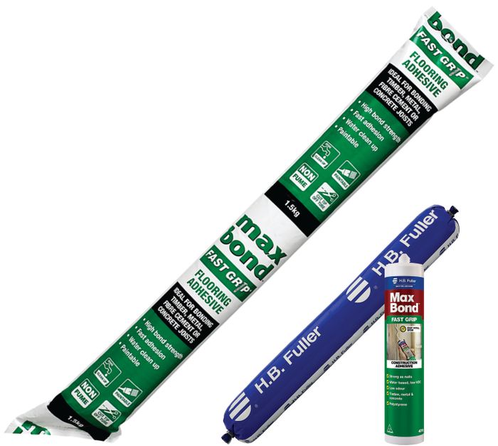 Max Bond™ Fast Grip Construction Adhesive is a water based, premium grade, multi purpose construction adhesive that is easy to use and provides a strong initial grab. It reduces squeaks in the flooring system, cures to give high bond strength and is ideal for bonding parquetry to floors and subfloors and for bonding solid timber strip flooring that will be sanded and finished after installation.